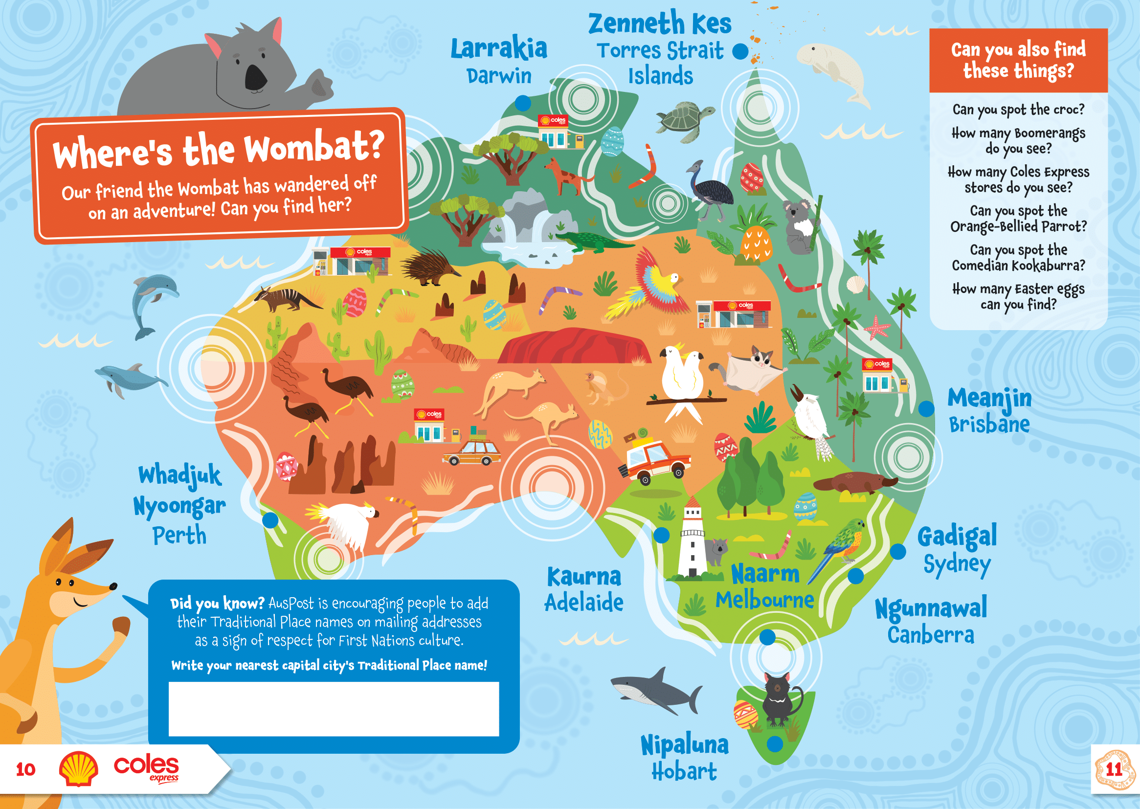 Many Australians turned to road trips during travel restrictions, with Coles Express keeping them fueled along the way. We created The Great Aussie Road Trip—a fun, educational activity booklet for our backseat drivers, aimed to strengten brand equity and position Shell Coles Express as the go-to stop for road trips. Truly a fun project to work on from concept to copy.